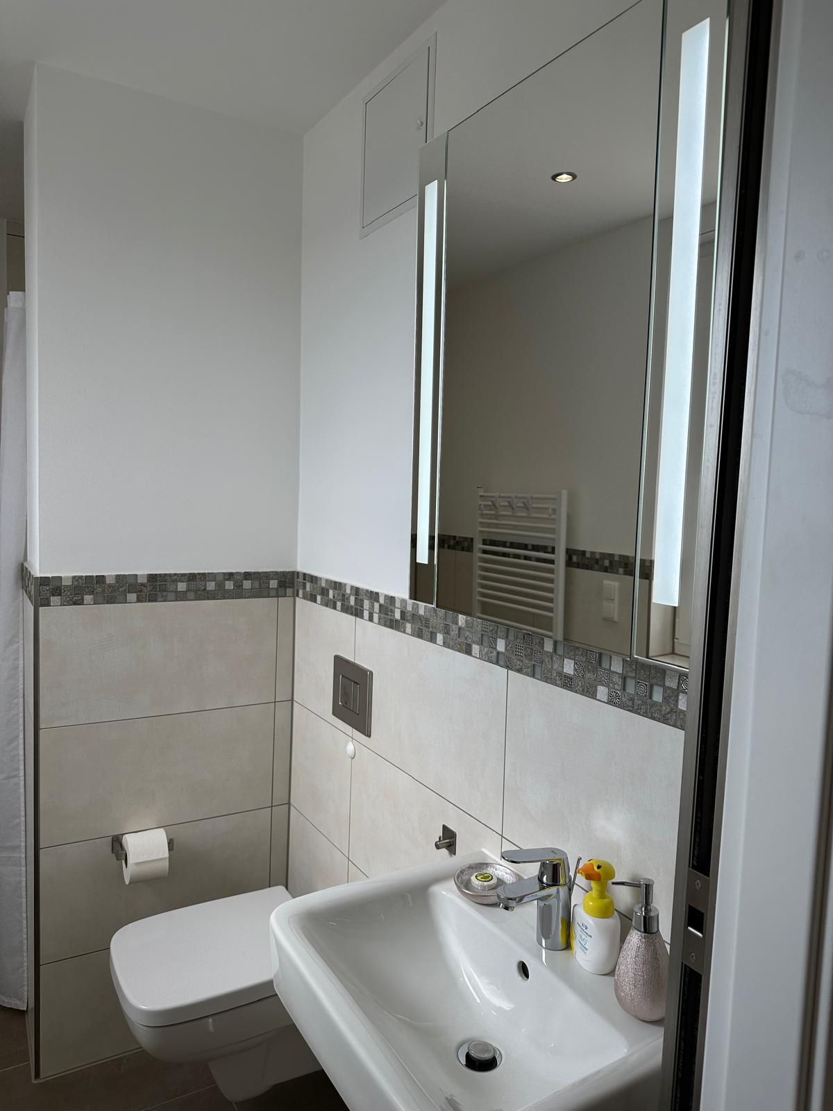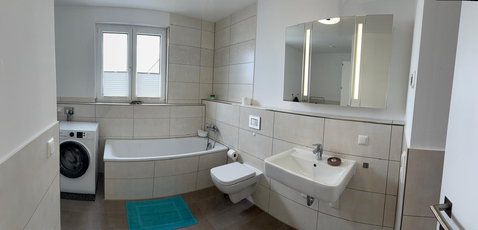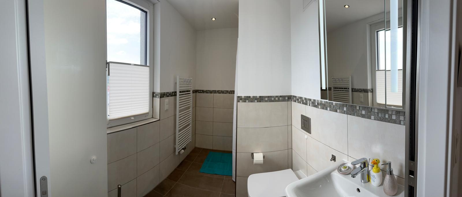 Dusch-WC und Wannenbad; 2 Kinderzimmer mit flexibler Aufteilung durch eine Schiebetür (2. Kinderzimmer auch als Spielzimmer nutzbar).
