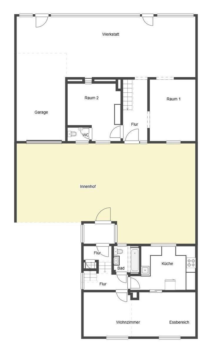 Eigenheim mit Garten inkl. Werkstatt, großer Garage und Innenhof