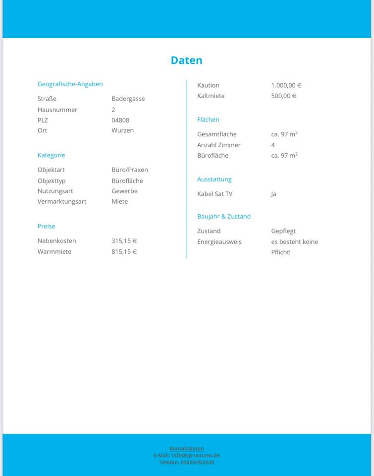 Sie befinden sich hier: Büroräume in Wurzen in Leipzig Nord - 3246153542-277-4261 | 1A-Immobilienmarkt.de