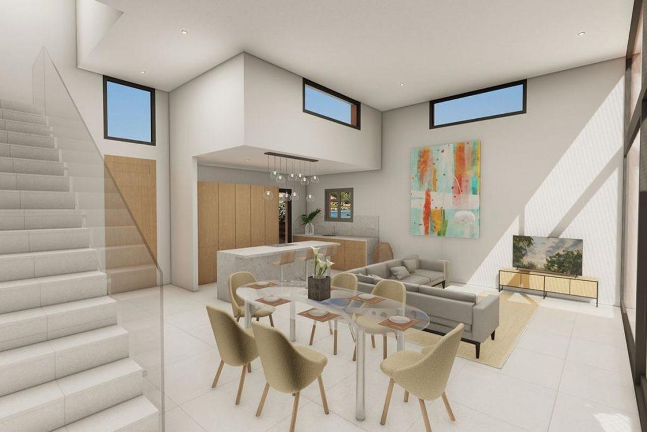 Zu den Merkmalen gehört ein interner Empfangsbereich, der sich zu einem weitläufigen, offenen Wohn-/Esszimmer und einer Küche mit ebenem Fußboden öffnet. Von hier aus gelangt man auf die überdachte Veranda, den privaten Landschaftsgarten und den Swimmingpool, um einen kombinierten Wohn- und Essbereich im Innen- und Außenbereich zu schaffen, der in dem besonders privilegierten Klima der Region als Einheit genutzt werden kann.