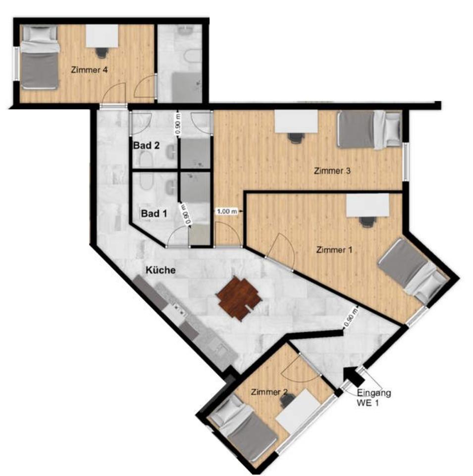 Modernes WG-Zimmer in stylischer 4er WG + Küche