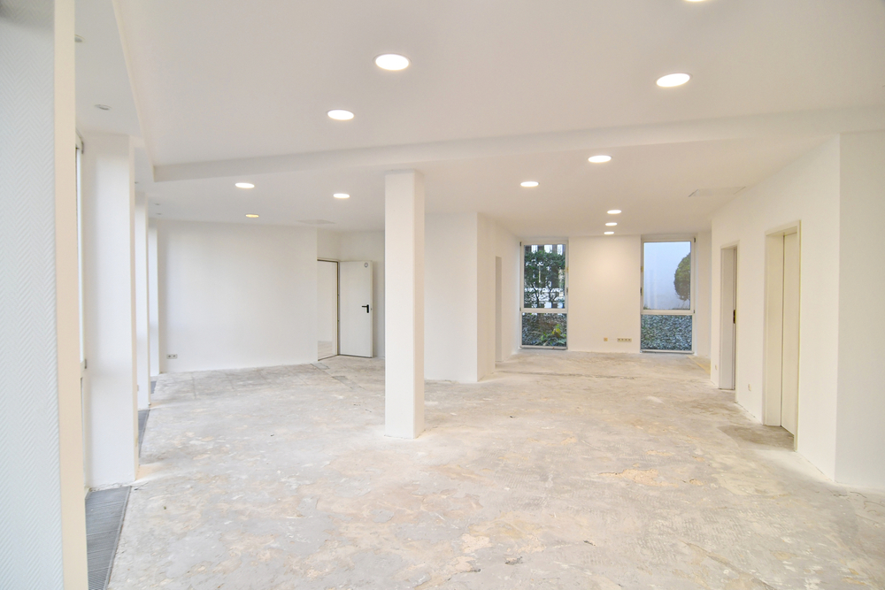 Im Erdgeschoss befindet sich die großzügig verglaste Verkaufsfläche, die aber auch als Büro oder Geschäftsstelle etc. dienen kann. An die zentrale Fläche gliedern sich mehre weitere Räume und zwei WCs an.