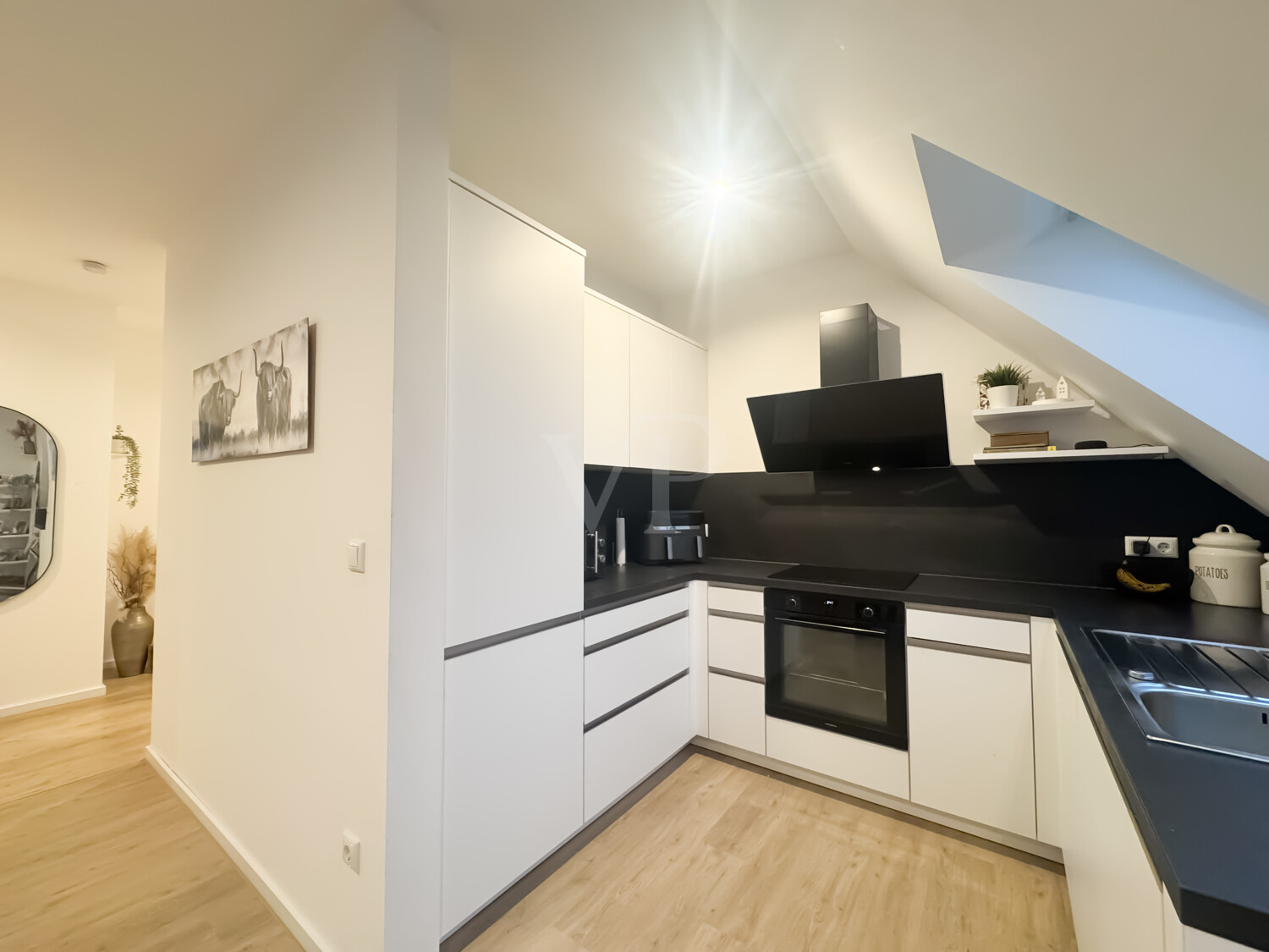Innenausstattung: - Einbauküche, im Mietpreis i.H.v 75, 00 EUR mtl. enthalten - Einbaugarderobe, im Mietpreis i.H.v. 25, 00 EUR mtl. enthalten - Bodenbelag Nichtwohnräume: Fliesen - Bodenbeläge Wohnräume: Designboden in heller Holzoptik - Innenwände mit Malervlies glatt und weiß gestrichen