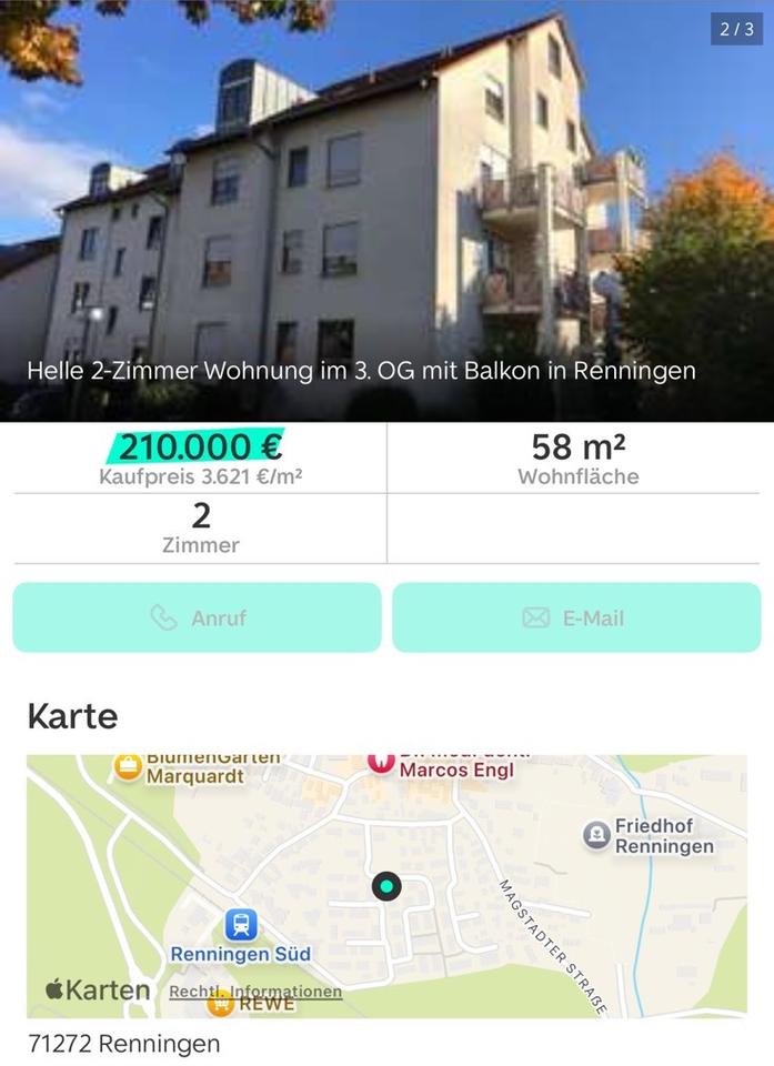 Sie befinden sich hier: 2 Zimmer Wohnung + 2 Tiefgaragen Stellplätze in Renningen in Renningen - 3250010402-196-8426 | 1A-Immobilienmarkt.de