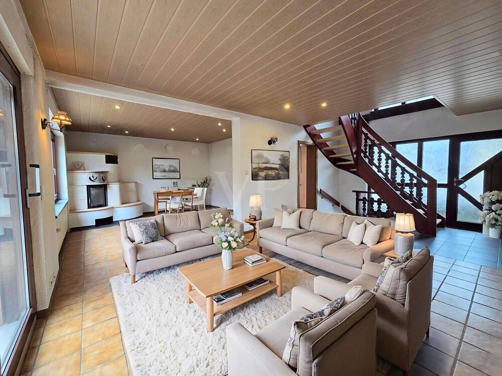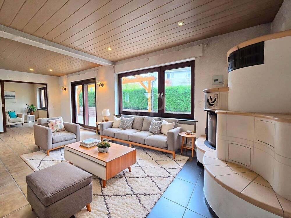 • Beispielmöblierung Wohnbereich mit Kachelofen - 5 Zimmer Einfamilienhaus in Usingen