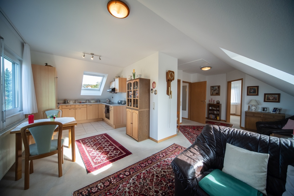 Das Dachgeschoss wurde 2002 ausgebaut und präsentiert sich als eigenständige Wohneinheit (eigenes Grundbuch) mit ca. 73 m², 2 Zimmer, Balkon, offener Küche (VHB) und einem Bad mit Dusche und Badewanne – ideal für erwachsene Kinder, Gäste oder zur Vermietung.