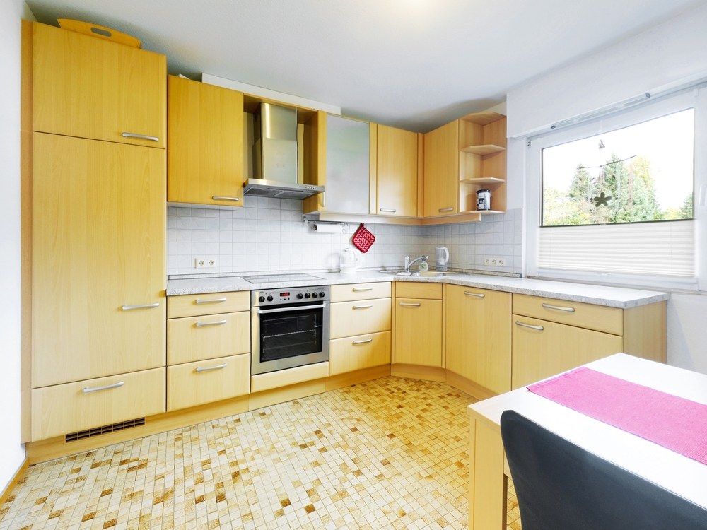 Im Erdgeschoss erwartet Sie eine helle, gut geschnittene 4-Zimmer-Wohnung mit rund 113 m² Wohnfläche. Das modernisierte Bad (2010) mit Eckbadewanne und Dusche, eine gepflegte Einbauküche (VHB) und aus dem Wohnzimmer, der direkte Zugang zur Terrasse mit Markise sorgen für hohen Wohnkomfort.