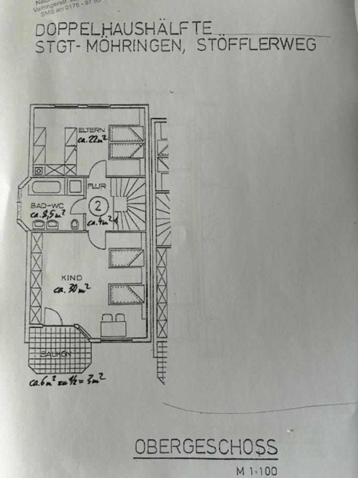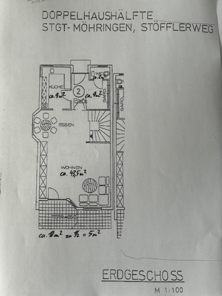 DHH Möhringen Privat Bj 88, Wf 185m Nf 61m Grd 309m2 TG DG 810k