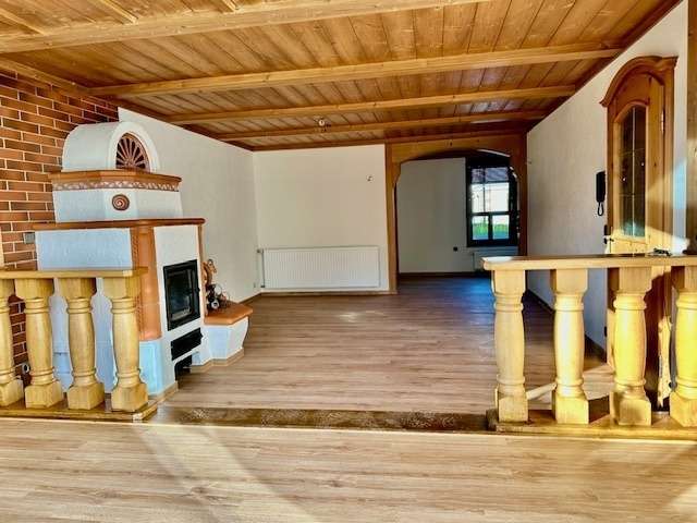 **Ausstattung:** - **Essküche mit 18 m²:** große, einladende Essküche ideal für gesellige Abende - **Bäder:** 1 modernes Badezimmer sowie ein Gäste-WC - **Bodenbelag:** Vinylboden und Fliesen sorgen für eine ansprechende und pflegeleichte Wohnatmosphäre - **Heizung:** Effiziente Brennwert-Zentralheizung (Gas) sorgt für angenehme Wärme in den kalten Monaten - **Kamin:** Der gemütliche Kamin im Wohnbereich bietet eine zusätzliche Wohlfühlatmosphäre - **Wintergarten:** Der lichtdurchflutete Wintergarten lädt zum Entspannen ein und erweitert den Wohnraum - **Abstellraum & Keller:** Praktische Stauraummöglichkeiten - **Ausstattung:** neuer Vinylboden, Kachelofen - **Keller:** Zusätzlicher Stauraum und Nutzungsmöglichkeiten