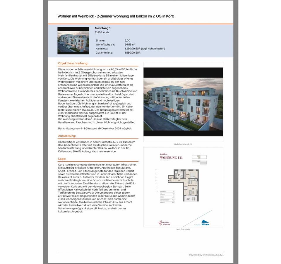 Sie befinden sich hier: Wohnen mit Weinblick - 2-Zimmer Wohnung mit Balkon in Korb - 3253634885-203-8387 | 1A-Immobilienmarkt.de