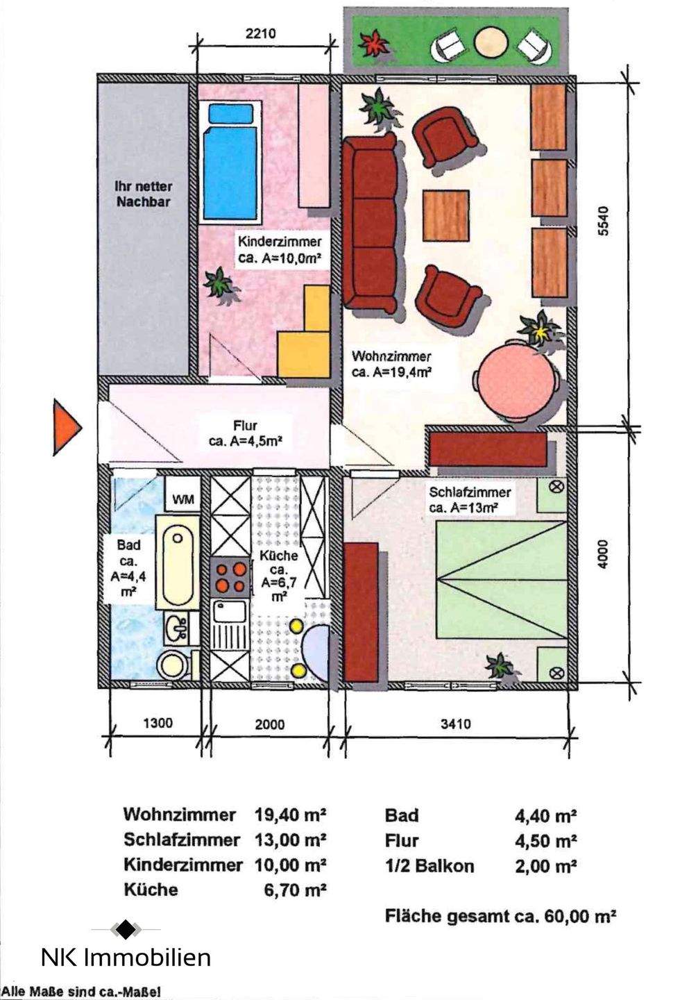 | Wohnfläche: | ca. 60,00 m² |