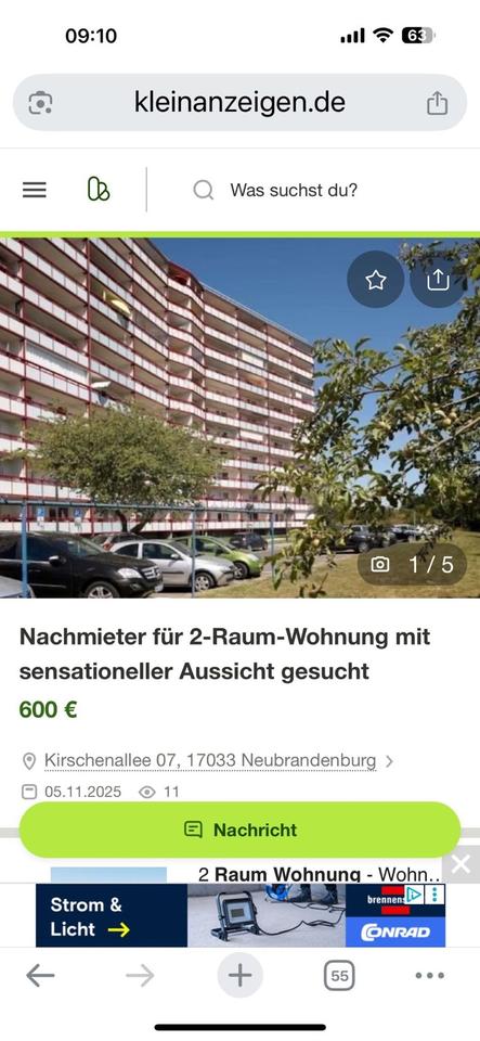 Sie befinden sich hier: 2-Raum-Wohnung mit traumhafter Aussicht auf den Tollensesee in Neubrandenburg - 3255741260-203-253 | 1A-Immobilienmarkt.de