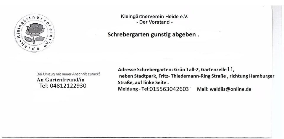 Sie befinden sich hier: Kleingarten in Sonnige und Grünen Ort . in Heide - 3251452259-207-855 | 1A-Immobilienmarkt.de