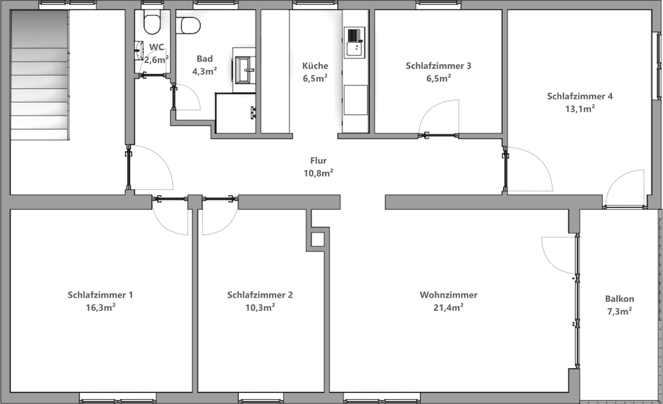 Gesamtgröße:ca. 100,00 m²