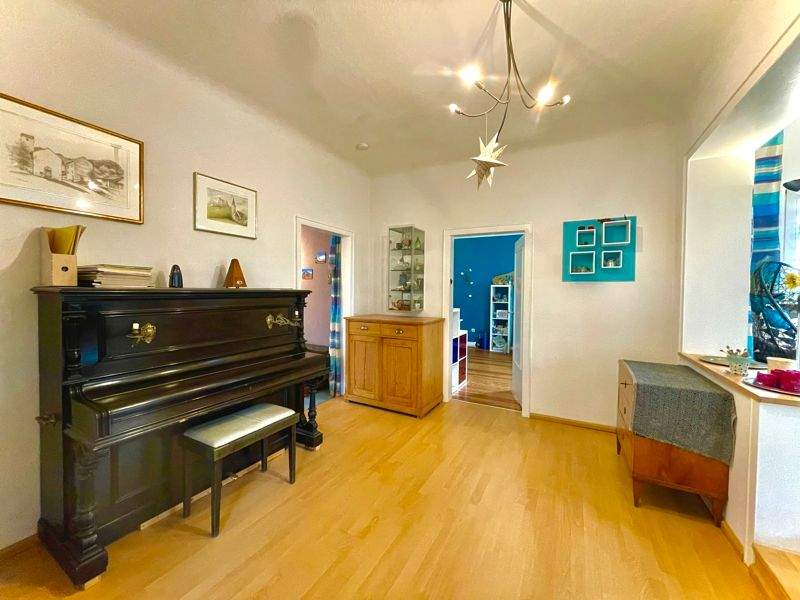 • Titelbild Wohnzimmer - Wie eine Doppelhaushälfte, nur horizontal geteilt: 4-Zimmer-Wohnung mit großem Garten und Keller
