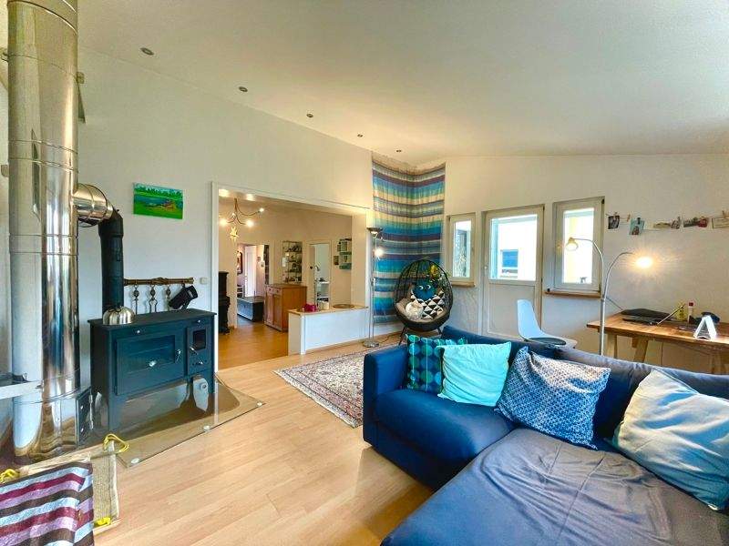 Titelbild Wohnzimmer - Wie eine Doppelhaushälfte, nur horizontal geteilt: 4-Zimmer-Wohnung mit großem Garten und Keller
