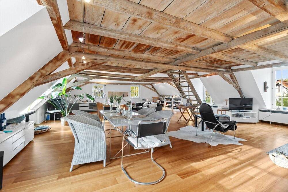 Blick auf den Loungebereich DG - Rarität am Rhein: Zwei exklusive Wohnungen in denkmalgeschütztem Gildehaus