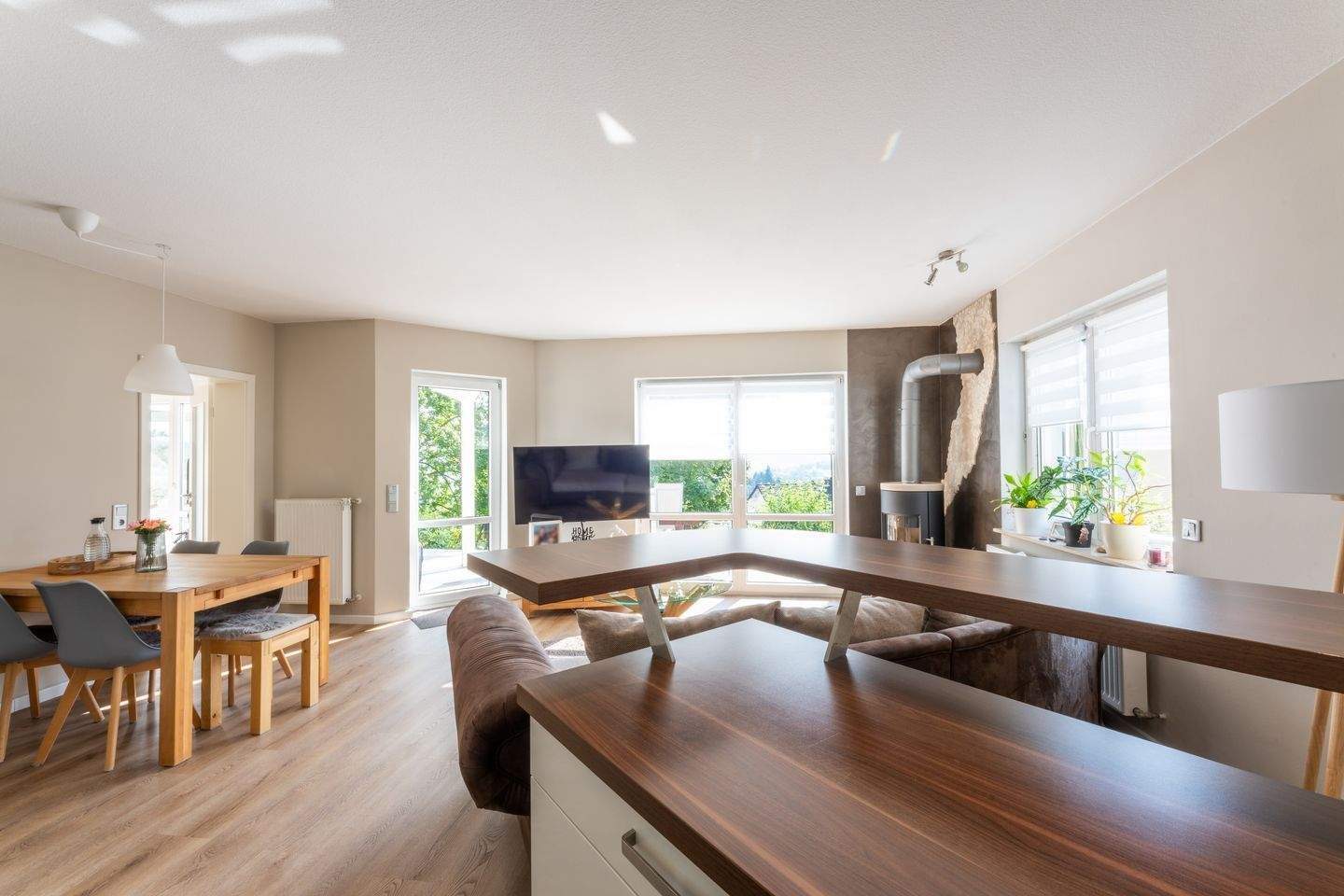 Heller Wohnbereich - das Herzstück - Neues Zuhause 2026 in Neuhäusel? Wohn-Gefühl auf 105 m² mit EBK, Terrasse, Garten, Helligkeit, modernem Charme!
