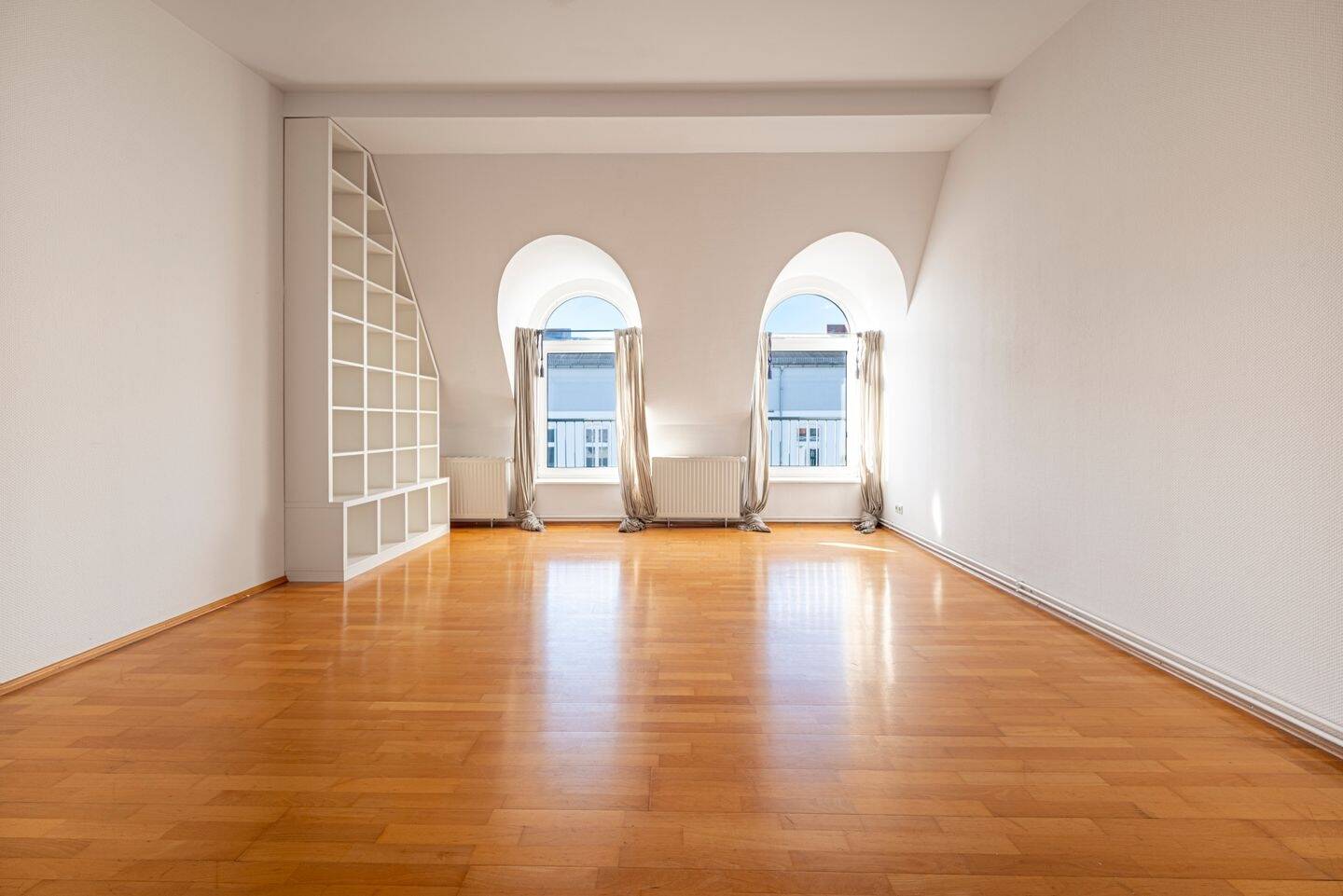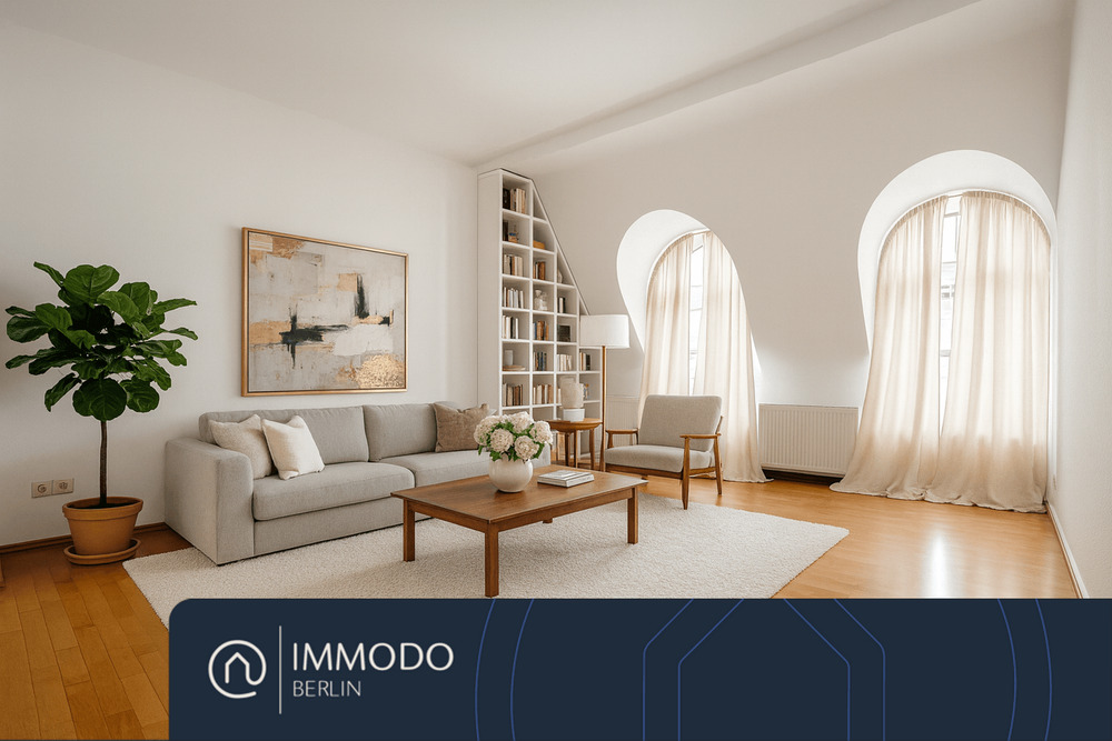 • Traumhafte Rundbogenfenster im Wohnzimmer - 3 Zimmer Etagenwohnung zum Kaufen in Berlin