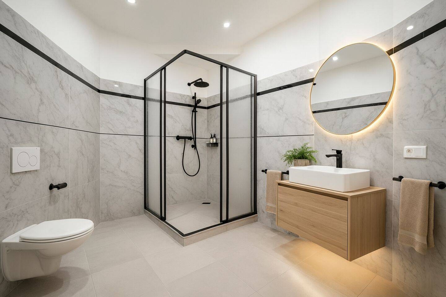 • Geräumiges Badezimmer mit XXL-Dusche -