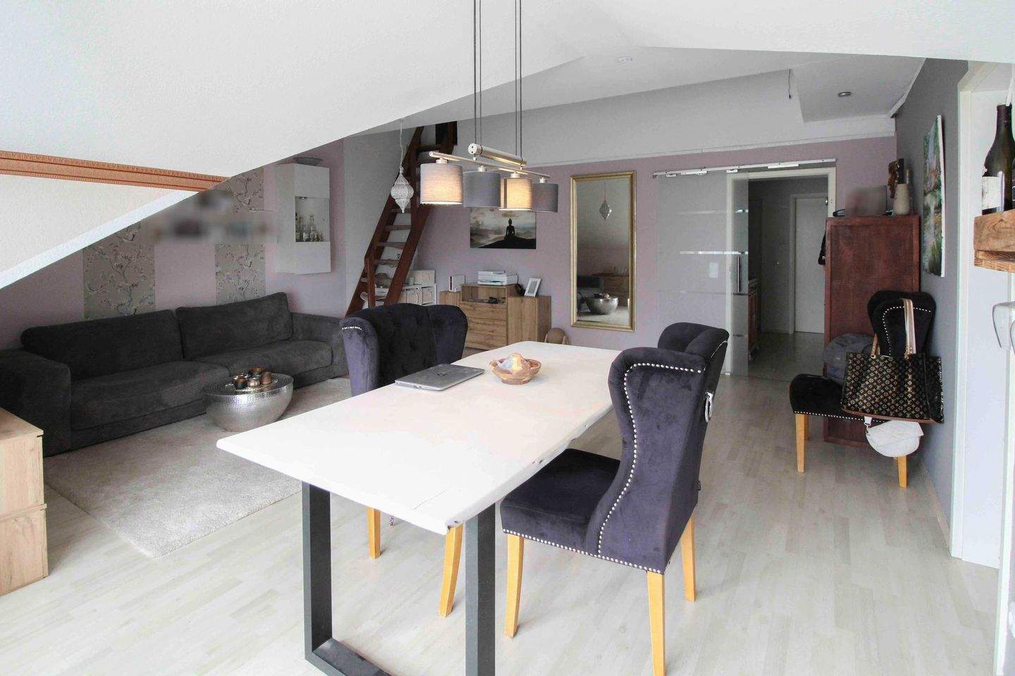 • Wohnzimmer mit Aufgang in das ausgebaute Dachgeschoss -