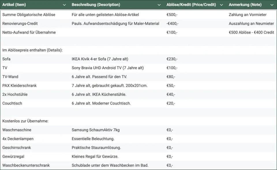 Angebot zur Miete
