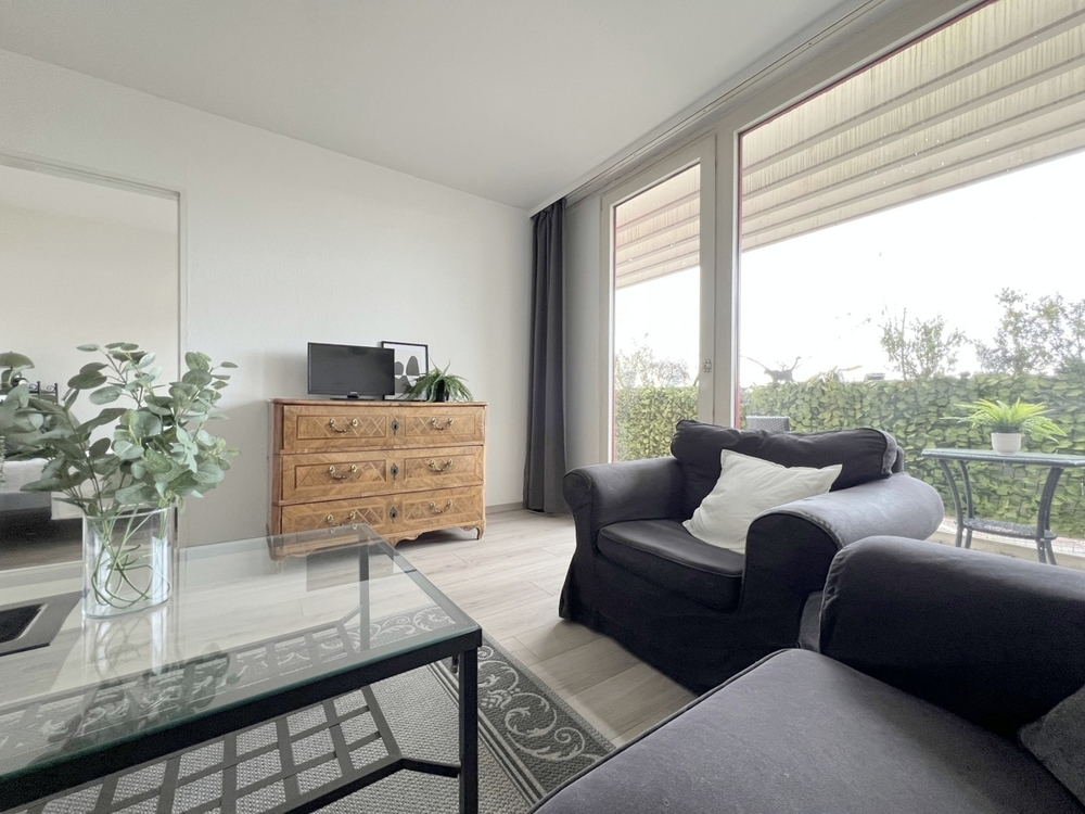 - Laminatboden im Wohn- und Schlafraum - Fliesenboden im Eingang und Küche - Einbauküche mit Elektroherd, Ceranfeld, Spüle und Kühlschrank - modernes Badezimmer mit Waschtisch, Badewanne und WC - die Wohnung ist vollständige und zeitlose möbliert und somit kurzfristig bezugsbereit