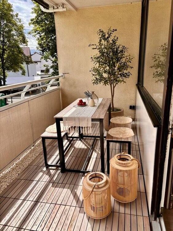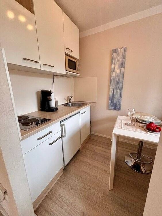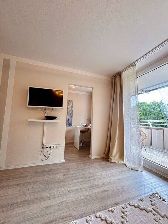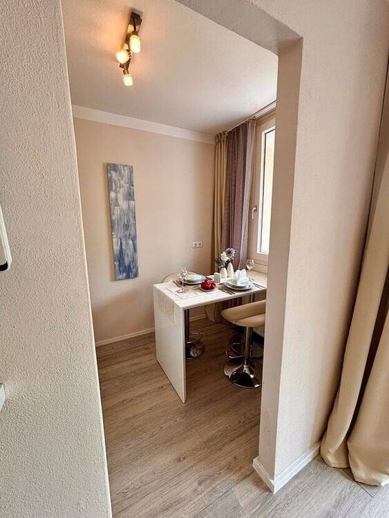 Die Wohnung ist vollständig möbliert und ausgestattet mit: hochwertigem Vinylboden komplett saniertem Badezimmer renoviertem Balkon eigenem Stellplatz