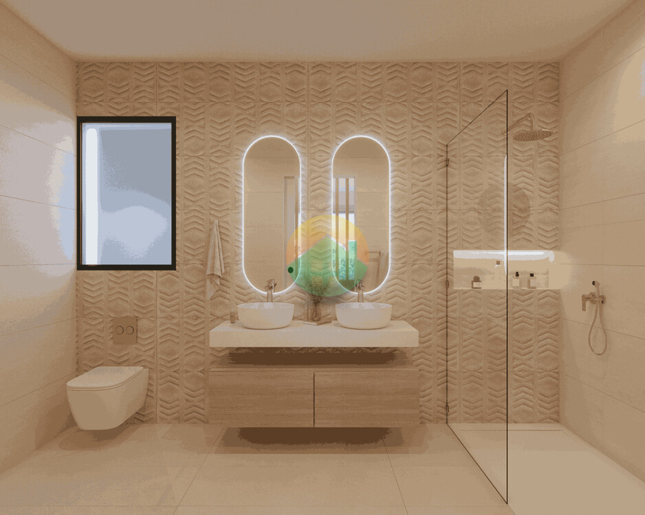 Villen Colia. Alle 3 Schlafzimmer und 2 Badezimmer. Dachterrasse mit Kunstrasen. Grundstücke zwischen 720 und 830 m² Hervorragendes Design und hochwertige Ausstattung. Privater 7, 15 x 3 m² großer Pool mit Außendusche. Naturrasen. Vorinstallation einer Klimaanlage mit Kanalanschluss. Warmwasserbereitung durch Aerothermie. Lackierte Aluminiumschreinereiarbeiten. Doppelt verglaste Fenster. Automatische Aluminiumjalousien in Schlafzimmer 2 und 3. Weiß lackierte Innentüren mit schwarzen Metallbeschlägen. Weiß lackierte Einbauschränke mit Schubladen, Regalen und Kleiderstangen. Vorinstallation einer Ladestation für Elektrofahrzeuge. TV-, Wasser- und Stromanschlüsse auf der Veranda und im Solarium. In die Küche integrierte Osmoseanlage für Trinkwasser. Die Küche ist mit hohen und niedrigen Küchenschränken ausgestattet. Arbeitsplatten und Fronten aus Kompaktstein. Geräte der Marke Johnson inklusive. Backofen, Mikrowelle, Induktionskochfeld mit integrierter Dunstabzugshaube. Eingebauter Geschirrspüler, eingebauter Kühl-Gefrierschrank und Weinkeller sind inklusive. Waschmaschine.