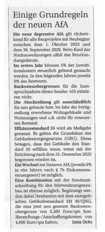Das Angebot bezieht sich auf die Wohnung 2 im Erdgeschoß - hangseitig 1. Obergeschoß. Sie gelangen über eine geräumige Diele mit Garderobe in die Wohnung. Von der Diele gelangen Sie in das Gäste-WC sowie in den hellen geräumigen Wohn/Eßbereich mit offener Küche von ca. 40 m² sowie auf die großzügige Terrasse/Balkon von 50 m². Der Küche ist ein sinnvoller Abstellraum zugeordnet. Über den Wohnbereich gelangen Sie in den separaten Schlaftrakt. Dieser besteht aus dem geräumigen Bad mit Fenster von ca. 9 m² ausgestattet mit Dusche und Wanne, dem gut aufgeteilten Elternschlafzimmer von ca. 16 m² sowie dem hellen Kinderzimmer/Büro von ca. 11 m². Die Wohnung hat eine Wohnfläche von ca. 114 m². Der Wohnung ist ein Kellerraum zugeordnet. Es besteht die Möglichkeit Außenstellplätze für 15.000 EUR sowie Tiefgaragenstellplätze für 27.000 EUR zu erwerben. Die Bezugsfertigkeit ist für Frühjahr 2026 vorgesehen. Steuerlicher Hinweis für Investoren : Die Wohnungen können bei einem Erwerb bis zum Jahr der Fertigstellung und einer Vermietung entsprechend den im Wachstumschanchengesetz aktuell beschlossenen Änderungen der degressiven Abschreibung nunmehr mit jährlich 5 %- bezogen auf den jeweiligen Buchwert/Restwert - abgeschrieben werden. Hierdurch können hohe Steuervorteile erzielt werden. Wir übernehmen keine steuerliche Beratung und keine Haftung für steuerliche Ziele. Hierzu informiert Sie Ihr Steuerberater umfassend.