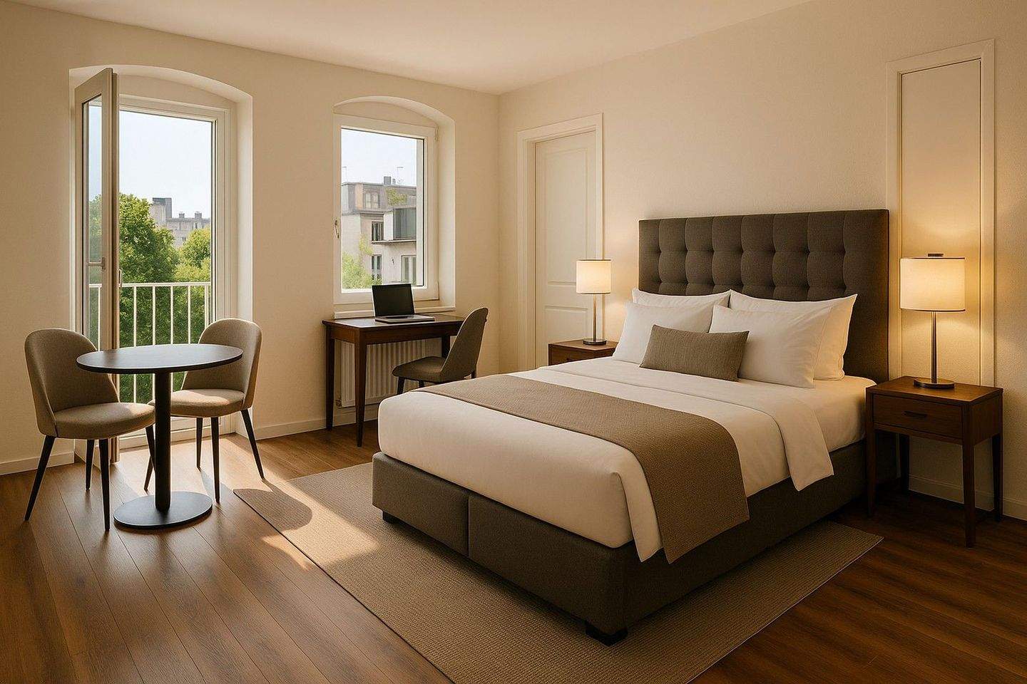 • Arbeits-/ Wohnbereich - Rarität am Helmholtzplatz: helles und absolut ruhiges City-Apartment mit Balkon + DG-Rohling