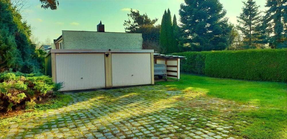 • Seitliche Ansicht von der Doppelgarage zum Wohnhaus - 4 Zimmer Einfamilienhaus zum Kaufen in Pegau