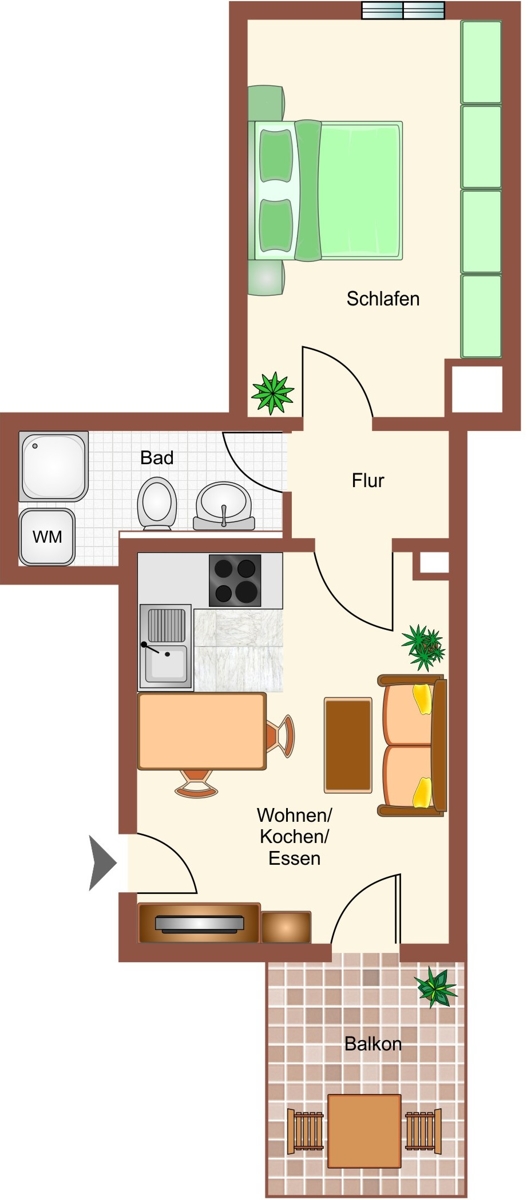 - WM-Anschluss im Bad vorhanden