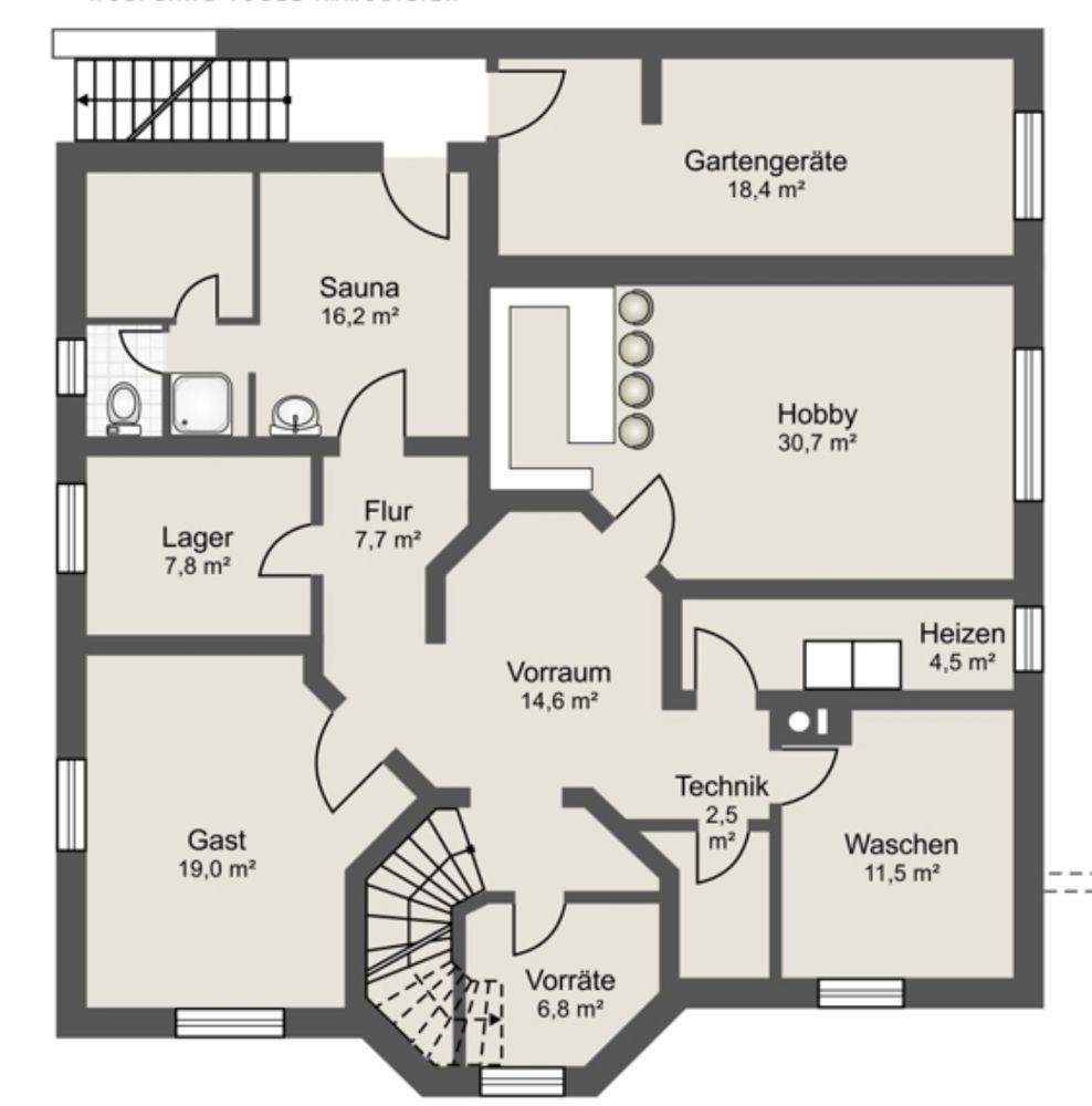 • Treppe in die obere Ebene -