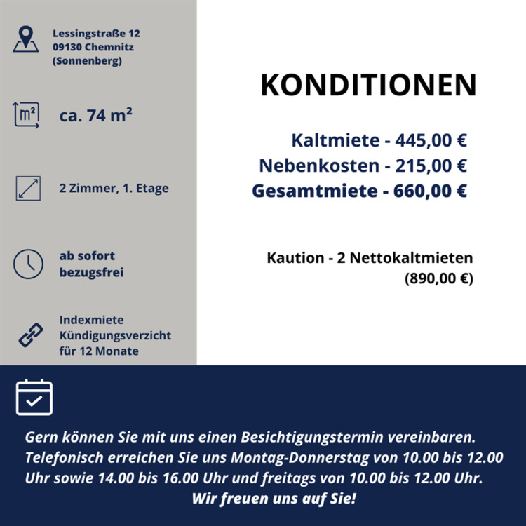 Kaltmiete: 445 EUR  (zzgl. Nebenkosten)