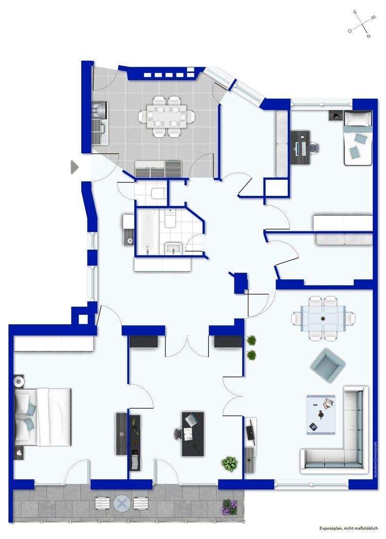 Grundriss beispielmöbliert -
