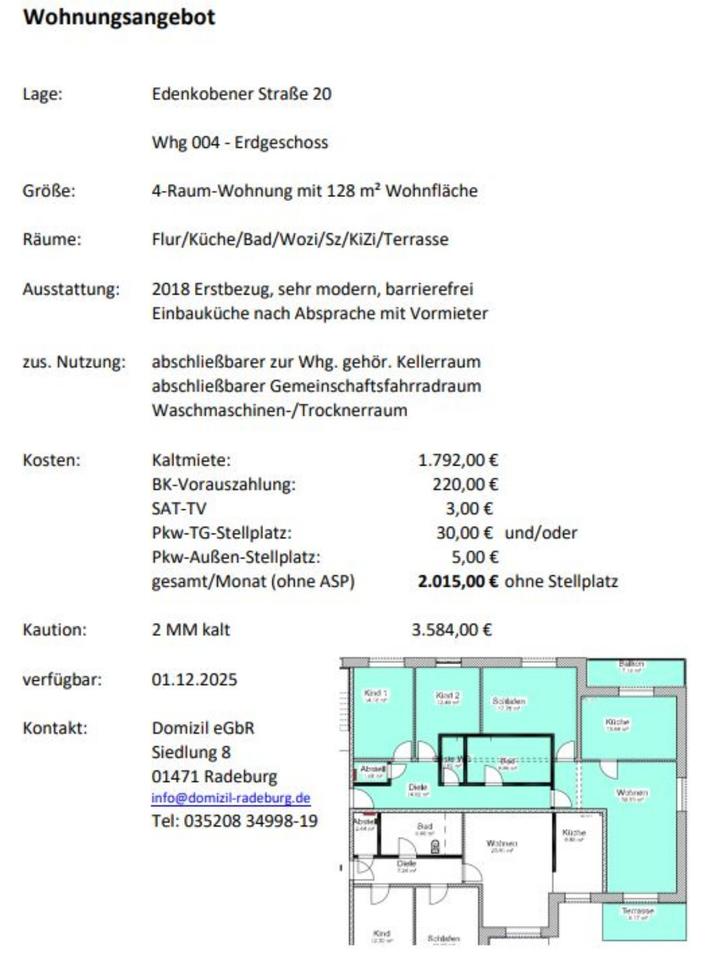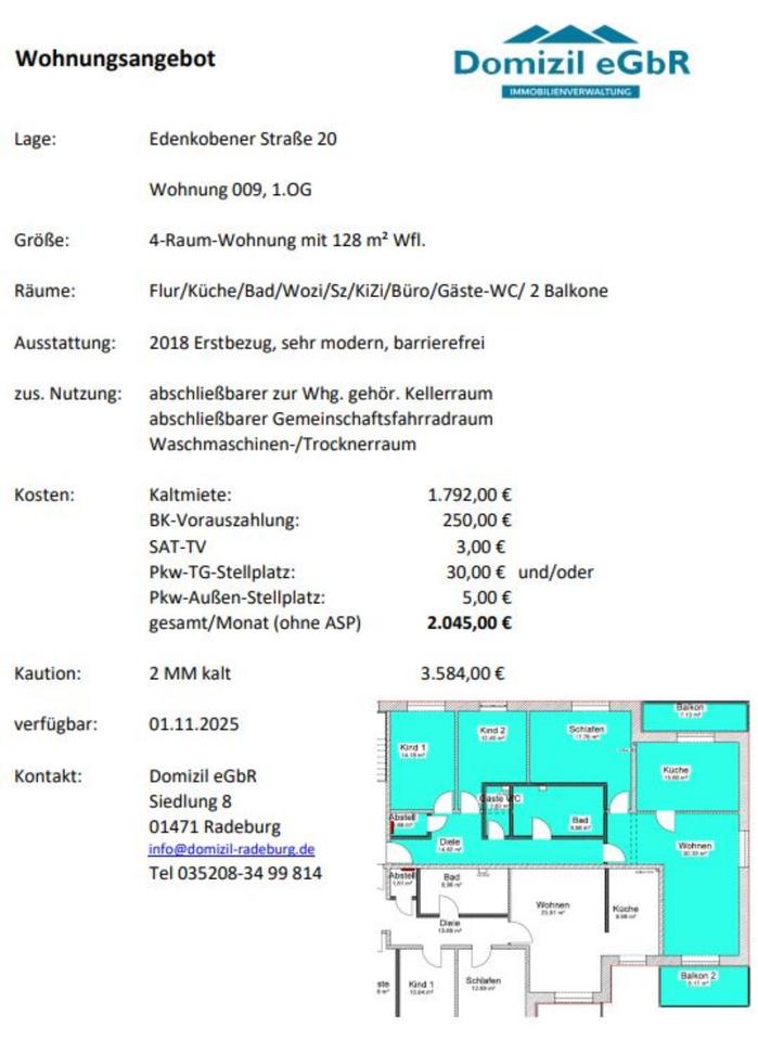 Sie befinden sich hier: zwei 4 Raumwohnung mit 2 BalkonenTerrasse und Blick ins Grüne (128 m²), Radeburg in Radeburg - 3269611462-203-3991 | 1A-Immobilienmarkt.de