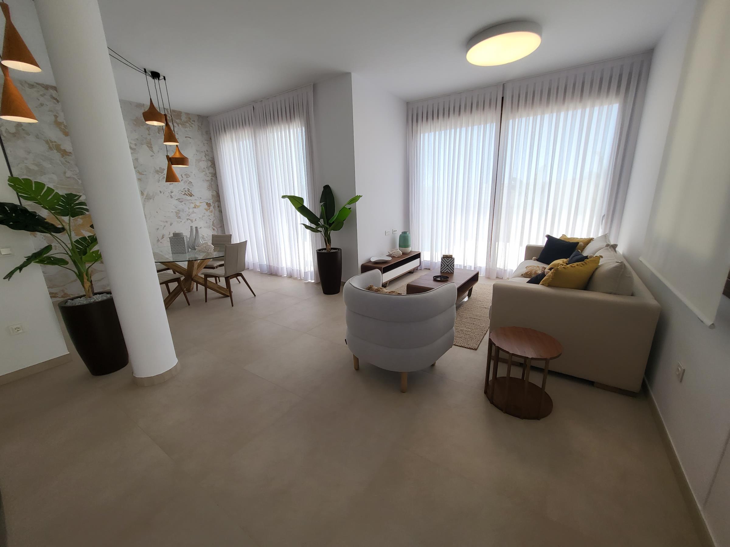 Das Estrella 3-Schlafzimmer-Modell befindet sich auf einer Ebene, mit 3 Schlafzimmern (das Hauptschlafzimmer mit eigenem Bad) und einem Familienbadezimmer sowie einem fabelhaften offenen Wohnbereich mit voll ausgestatteter Luxusküche.