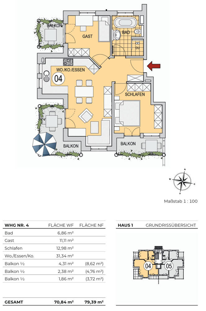 MGF-Group: 3-Zimmerwohnung 3 Balkone und einer Wohn-Nutzfläche von 79,39 m² - WHG 04.