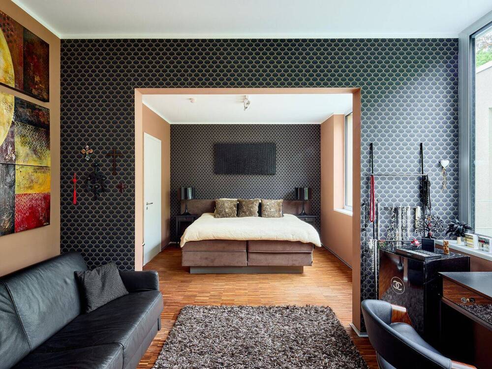• Der Wohnbereich öffnet sich zur hellen Gartenseite und verfügt über einen Durchsichtkamin, der für viel Behaglichkeit in den Wintermonaten sorgt -