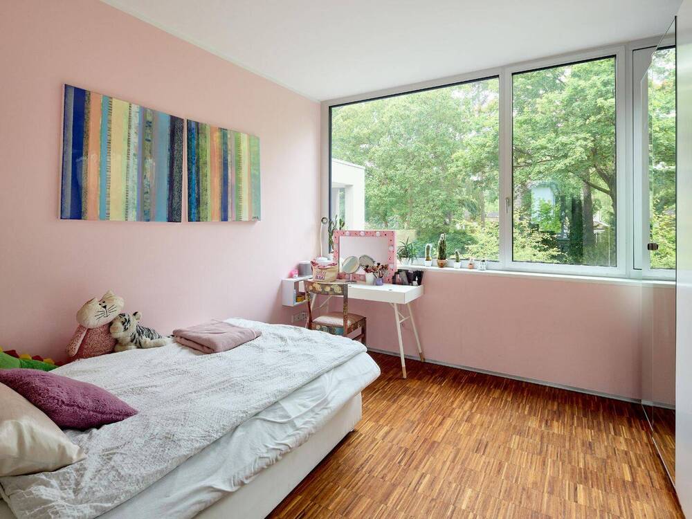 • Blick in eines der Kinderzimmer, das sich nach Süden ins Grüne öffnet -