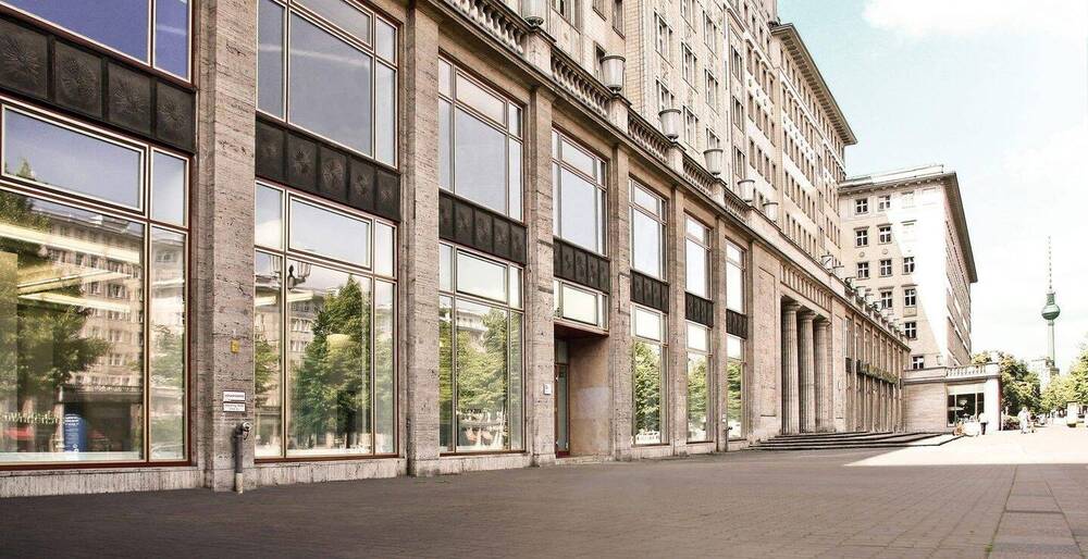 Sie befinden sich hier: Repräsentative Ladenfläche mit großer Schaufensterfront Karl-Marx-Allee in Berlin Friedrichshain - 257AUGWTY6E8 | 1A-Immobilienmarkt.de