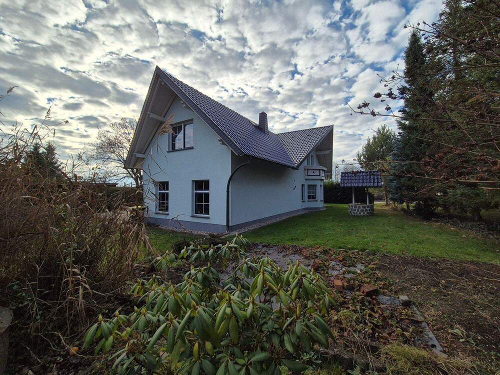 • Außenansicht - Großzügiges Einfamilienhaus mit gepflegtem Grundstück, Garage, Carport in Söllichau zu verkaufen! Ab 1.537,50 EUR Rate!