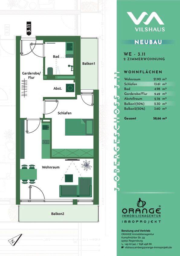 Wohnfläche:ca. 56,40 m²