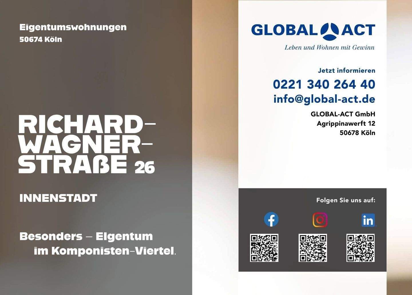 Sie befinden sich hier: Köln Neustadt-Süd! – Moderne 3-Zimmer-Eigentumswohnung in der Richard-Wagner-Str. 26, WE 8 in Köln Neustadt-Süd - 25I1Y4NK26GJ | 1A-Immobilienmarkt.de