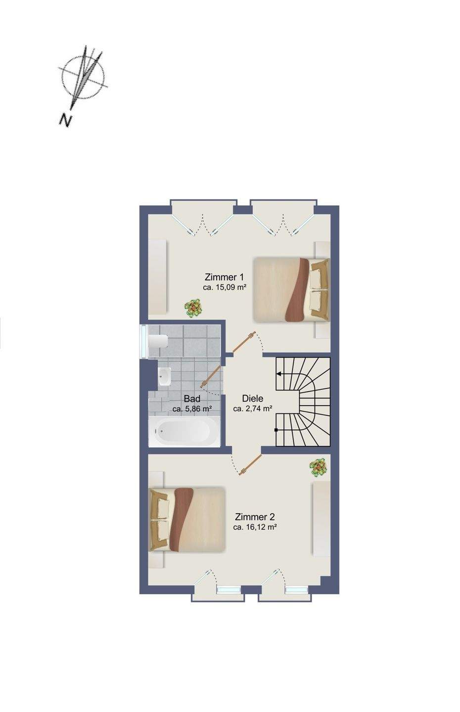 • Zimmer 2 im Dachgeschoss -