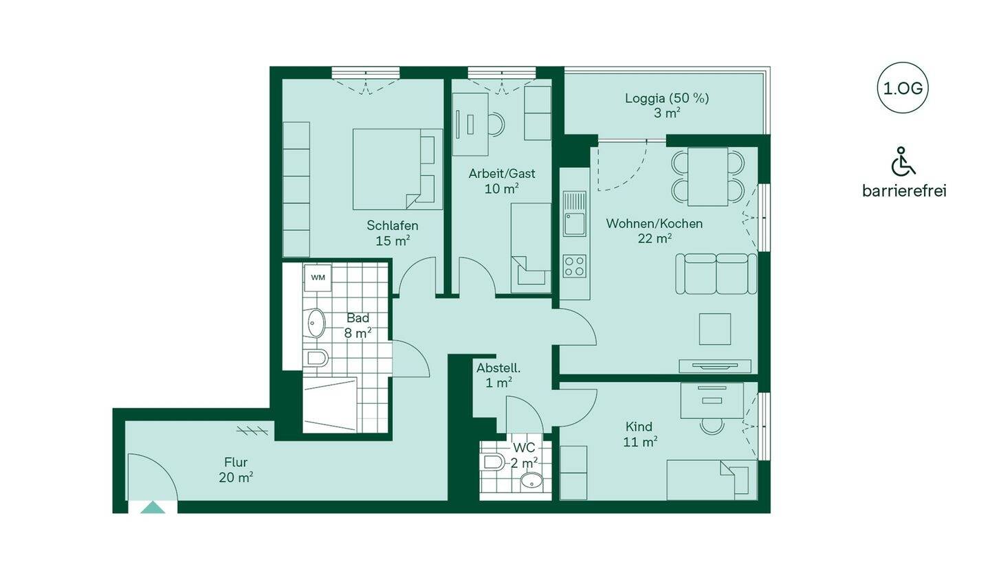 Barrierefreie Wohnung mit Bad, Gäste-WC, Loggia