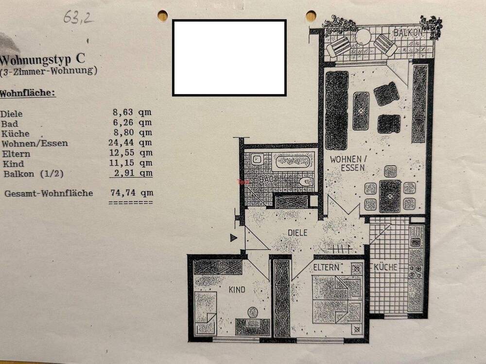 Gesamtgröße:ca. 74,00 m²