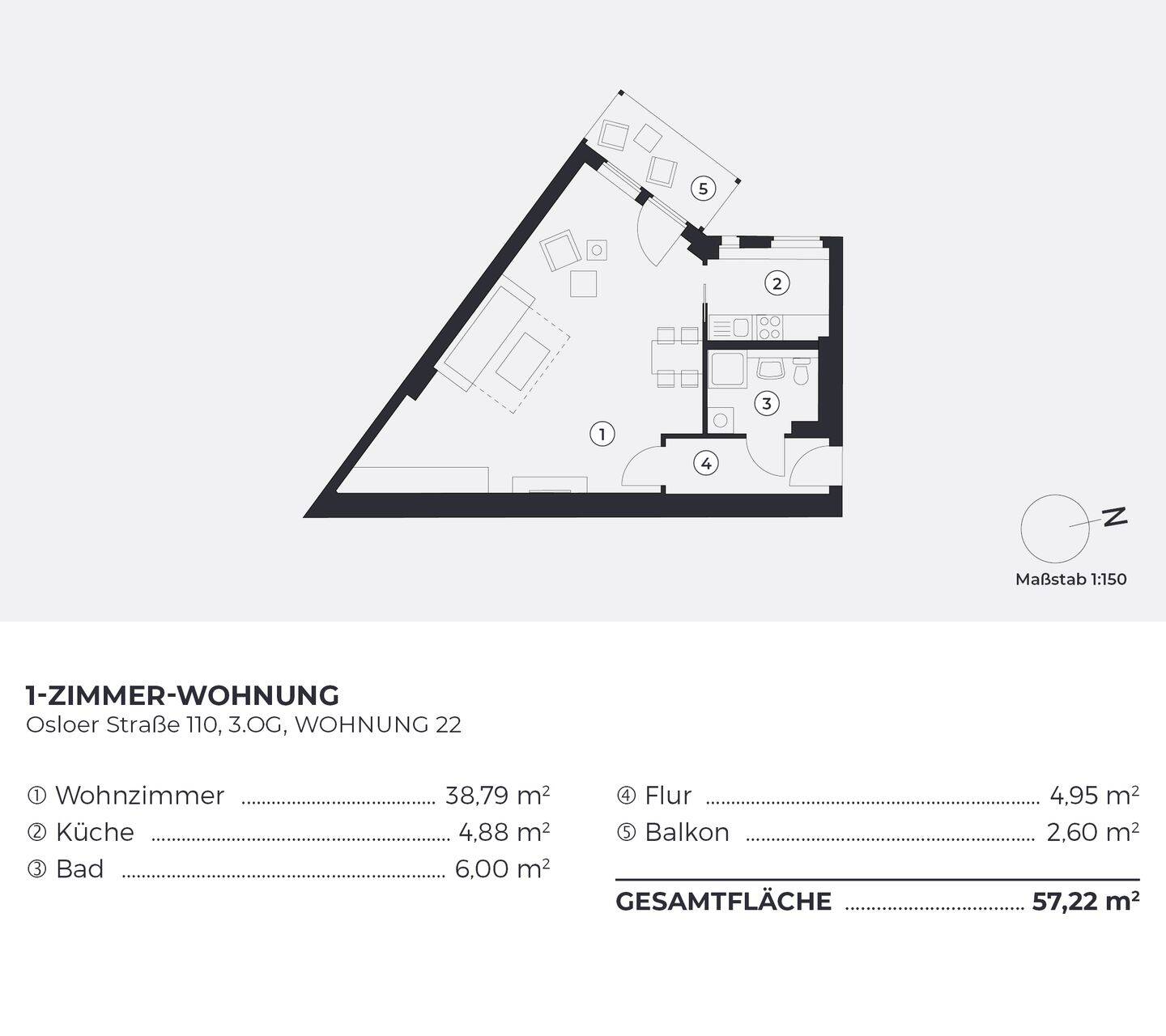 Wohnfläche:ca. 57,20 m²