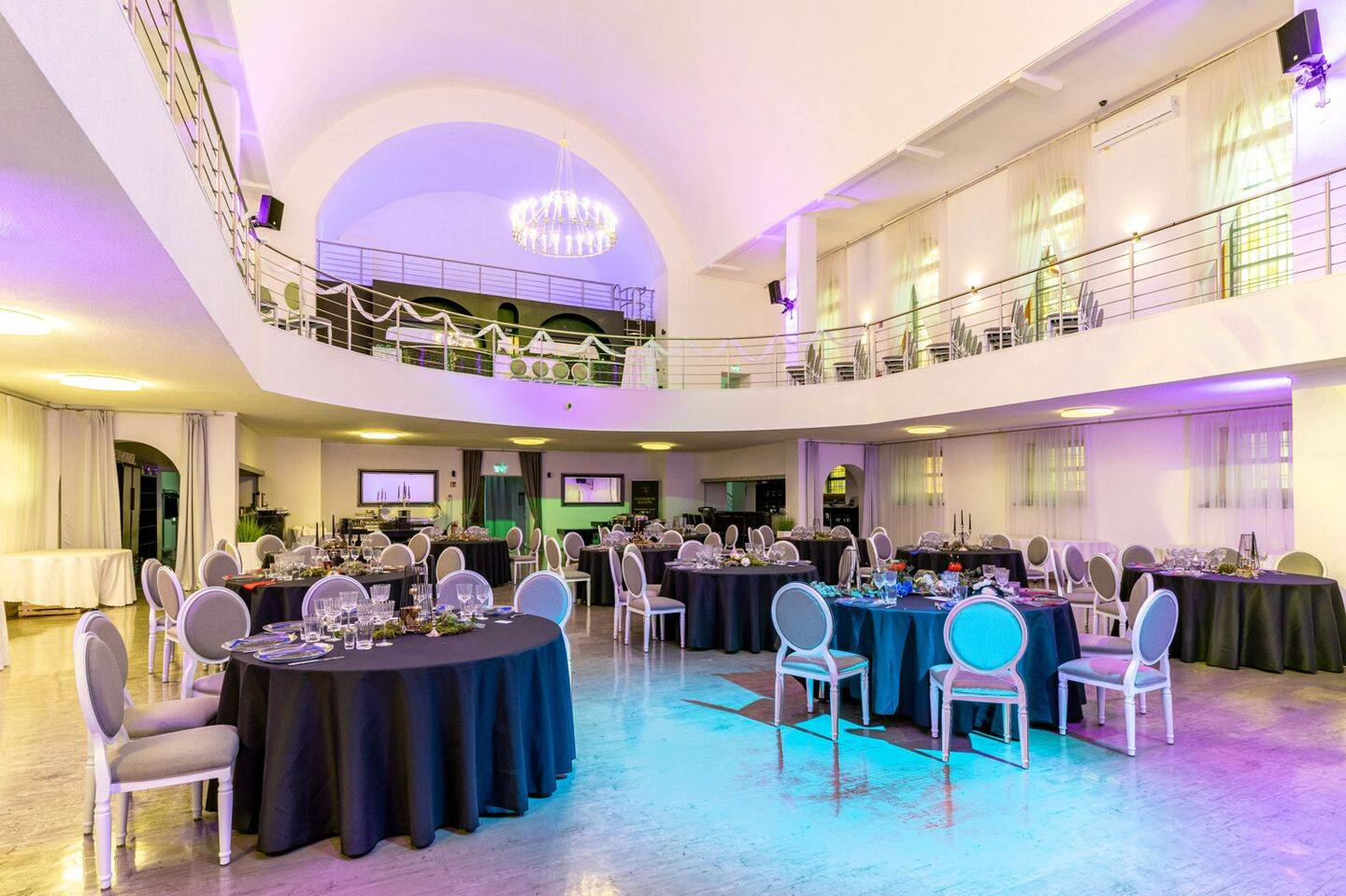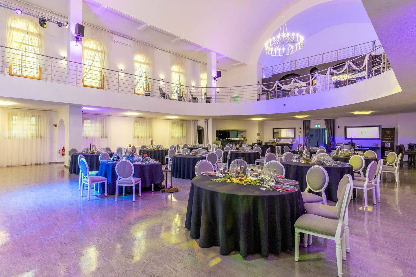 • Blick zur Empore mit Bar und DJ -